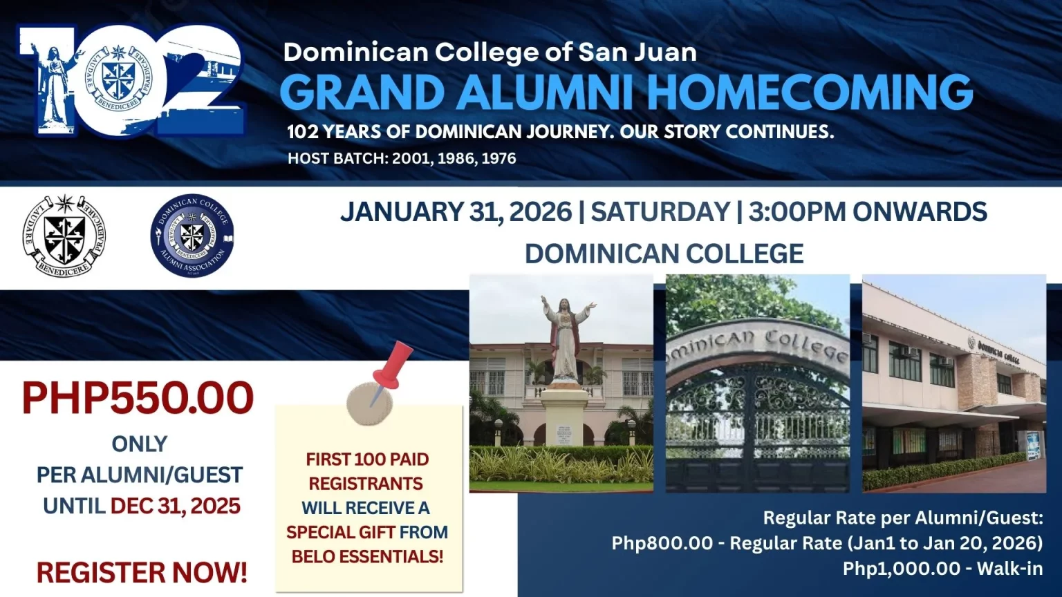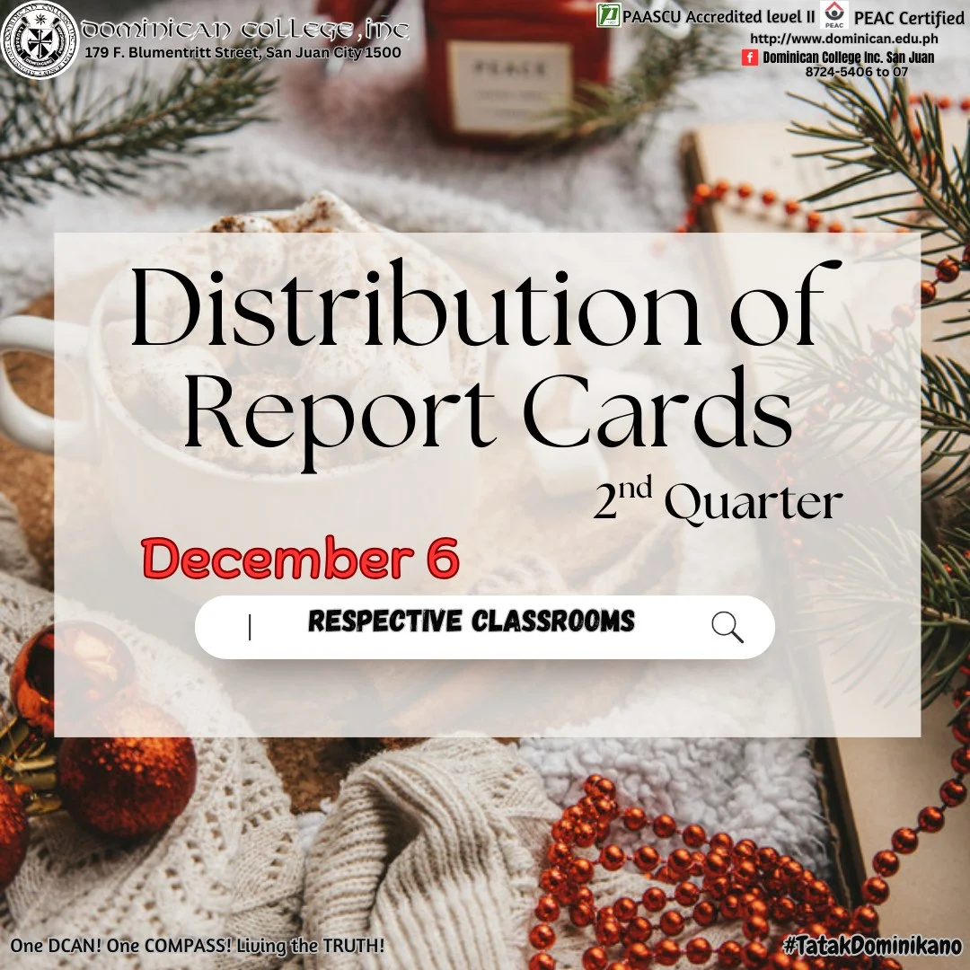 Got a grade of 90 or above? Grab this golden opportunity to study for FREE at Dominican College, San Juan City!