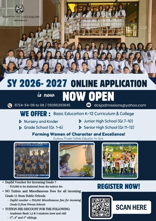 Got a grade of 90 or above? Grab this golden opportunity to study for FREE at Dominican College, San Juan City!